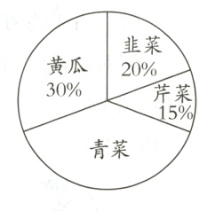 26. 一块菜地种植了四种蔬菜,这四种蔬菜的种植面积情况如图所示。已知黄瓜和韭菜的种植面积一共是260平方米,青菜的种植面积是多少平方米?(5分)