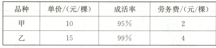 31. 陕北地区地处沙漠边缘,是沙尘暴的高发区,为了美化环境,政府决定购买甲、乙两种树苗共2000棵植树造林。种植两种树苗的相关信息如下表: