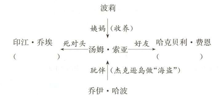 11. 阅读名著,可以通过梳理人物关系图来更好地了解故事内容。请根据《汤姆·索亚历险记》,把下边的人物关系图填写完整。(3分)