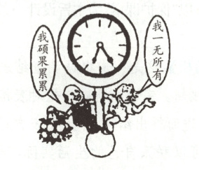 1.钟摆的指针指向六点二十五分,预示着生命步入晚年,钟摆下有两个老人,一个硕果累累,一个一无所有。 2.示例:要珍惜时间,让自己的生命充实,有收获。