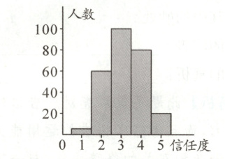 上图是一个针对消费者对广告的信任度的调查统计表,横坐标的1代表非常信任,2代表信任,3代表有时信任,4代表不怎么信任,5代表一点也不信任。纵坐标代表消费者人数。请你根据图表写一下此次调查的结果,并针对结果,发表一下自己的看法。