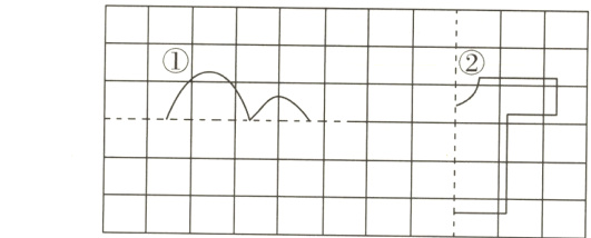 (此处有一个方格图,图中有两个图形①②,分别为:类似两个半圆的图形、类似一个不规则折线的图形,每个图形有一条对称轴)