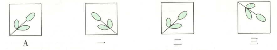 1. 仔细观察下面三幅图案,第( )幅图是图 A 的轴对称图形;第( )幅图是通过图 A 平移得到的。