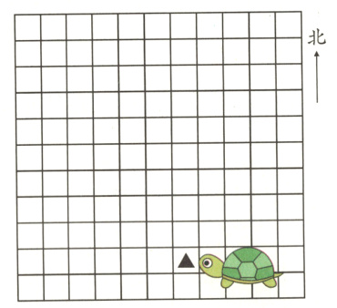 2. 标出乌龟行走的路线。“▲”是乌龟现在的位置。先向西平移 5 格,再向北平移 8 格,又向东平移 8 格,最后向南平移 5 格。
