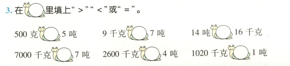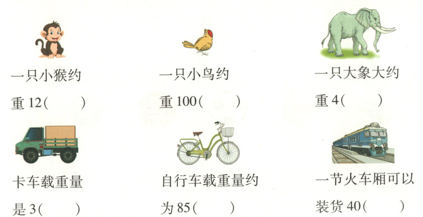4.根据你的经验判断,比1吨重的,在 里画“△”,比1吨轻的,在 里画“○”。