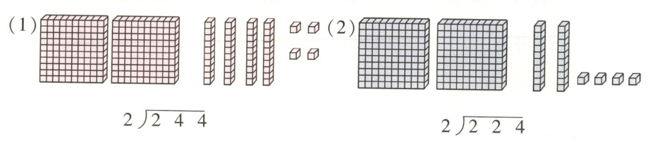 (3) $\square$52÷4,要使商是三位数,$\square$里最小填( ),这时商是( )。