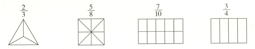 2. 根据所给的分数,在下面相应的图形里涂一涂。