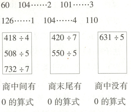 商中间有0的算式 商末尾有0的算式 商中没有0的算式