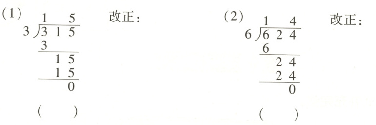 (1) 如果商的中间有0,那么被除数的中间( )。