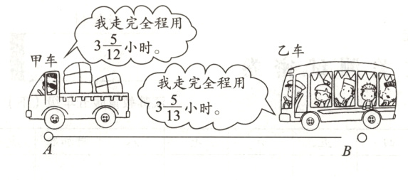 $3\frac{5}{12}>3\frac{5}{13}$,所以乙车的速度快。