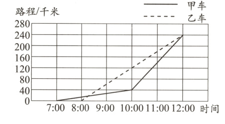 7.下图是从同一车站发出的甲、乙两辆车的运行情况统计图。