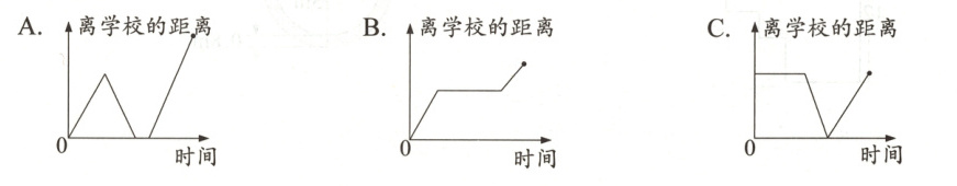 5. 明明放学回家,走了大约一半路的时候,想起教室的窗户没有关,于是他又返回学校,关好窗户后回家。下列图中,比较准确地反映了明明的行为的是( )。