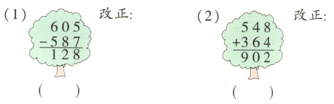 3. 数学门诊。(对的打“√”,错的打“×”,并改正)