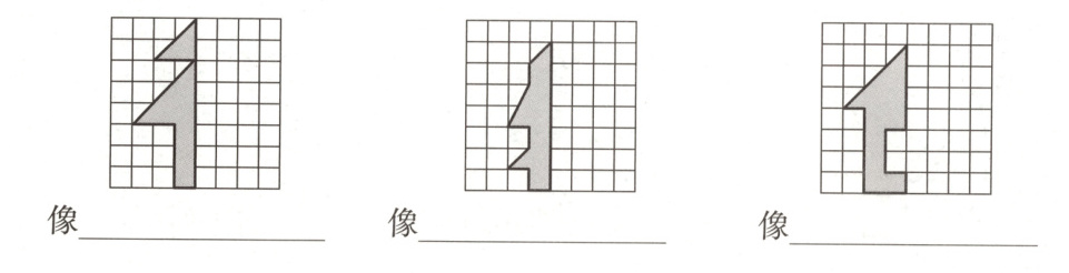 三、把下面各图形补全,使它们分别成为一个轴对称图形,并说说这些图形像什么。(12分)