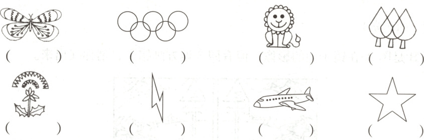 二、下列图形是否是轴对称图形?是的在括号里打“√”,并画出对称轴。(12分)