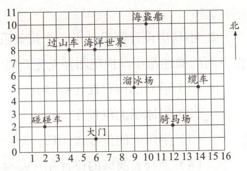2. 海盗船的位置是(____,____),海洋世界的位置是(____,____);