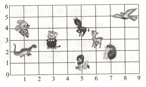 1. 恐龙在第1列第2个位置上,它的位置可以表示为(____,____),那么狮子的位置在(____,____),老虎的位置在(____,____)。
