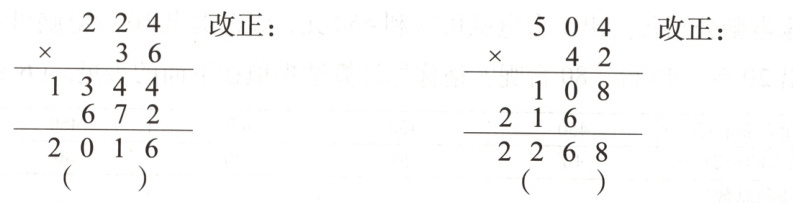 2. 下面的计算对吗? 如果不对,请改正。(6分)