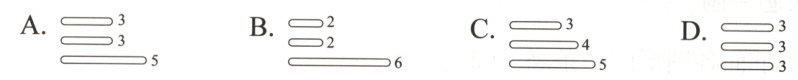 6. 下面各组中的三根木棒不能围成三角形的是( )。(单位:cm)