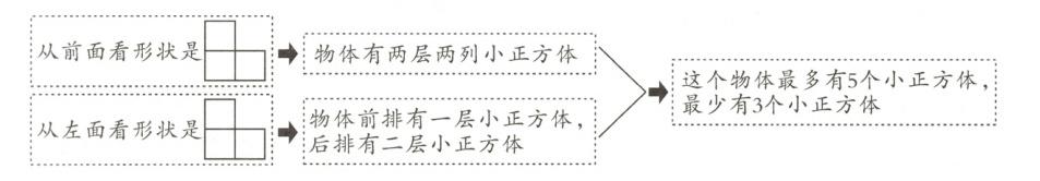 例7 一个由若干个相同小正方体垒成的物体从前面看和从左面看的形状都是