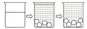 5. 下图是测量一个玻璃球体积的过程:①将$300ml$的水倒进一个容积为500 $mL$的杯子中;②将四个相同的玻璃球放入水中,结果水没满;③再将一个同样的玻璃球放入水中,结果水满溢出。根据以上过程,推测这样一个玻璃球的体积的范围为( )。