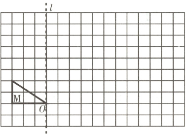 (2)将图形$M$以已知直线$l$为对称轴,画出轴对称图形的另一半,得到图形$B$。