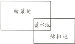 14. 如下图,在白菜地和辣椒地之间有一个蓄水池,蓄水池的面积占白菜地的$\frac{1}{9}$,占辣椒地的$\frac{1}{6}$,白菜地的面积是辣椒地面积的$\frac{( )}{( )}$。