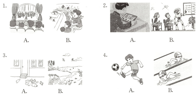 一、听录音,在正确的图片下画“√”。(8分)