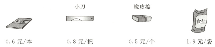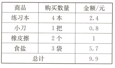 3. 小红和妈妈一起到商店买了一些商品,妈妈让小红统计都买了什么、各花了多少钱、一共花了多少钱。