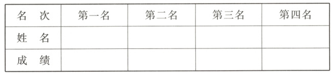 (2)四名同学60米短跑的成绩分别是小虹14.3秒,小丽14秒,小娜14.03秒,小冰14.13秒。请把她们的姓名和成绩填在下表里。(提示:用时少的同学跑得快)