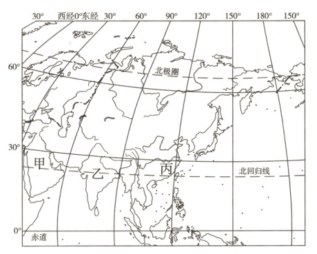 @@A [解析]甲地位于阿拉伯半岛,属于热带沙漠气候;乙地位于印度半岛北部,属于热带季风气候;丙地位于我国东南沿海,属于亚热带季风气候。