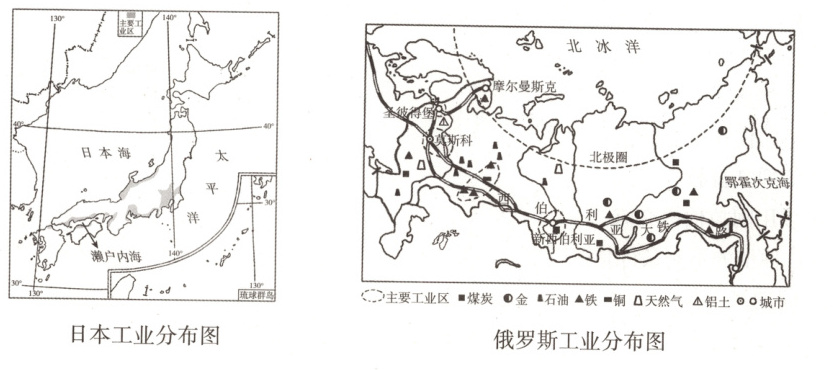 日本和俄罗斯工业发达,其发展优势各不相同。读图,回答24~25题。