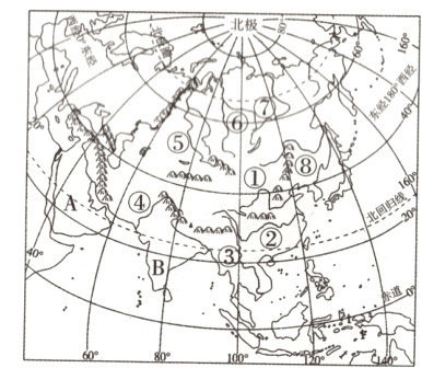 (2)①~⑧八条河流中,注入北冰洋的是 ___________(填序号),这些河流航运价值不高的主要原因是 ____________________。