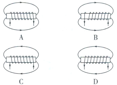 6 一通电螺线管中的电流方向和其周围磁感线的分布如图所示,其中正确的是( ).