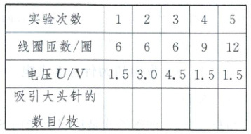 (4)小柯在实验中改变了电磁铁两端的电压和线圈的匝数,观察电磁铁吸引大头针的数目,因此需要记录电磁铁两端电压、线圈的匝数和吸引大头针的数目,由此设计表格.