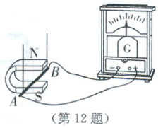 13 如图所示是研究电磁感应现象的实验装置. 实验时,要使电流表的指针摆动,应先________,然后让导线ab________(填“上下”或“左右”)运动.