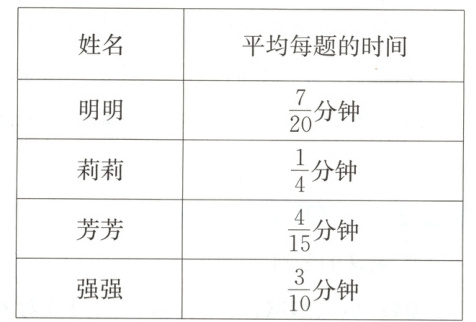 $\frac{7}{20}$ = $\frac{21}{60}$ $\frac{1}{4}$ = $\frac{15}{60}$ $\frac{4}{15}$ = $\frac{16}{60}$ $\frac{3}{10}$ = $\frac{18}{60}$ 因为 $\frac{15}{60}$<$\frac{16}{60}$<$\frac{18}{60}$<$\frac{21}{60}$ 所以 $\frac{1}{4}$ 分钟<$\frac{4}{15}$ 分钟<$\frac{3}{10}$ 分钟<$\frac{7}{20}$ 分钟 应选莉莉参加。