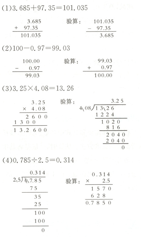 例1 四则运算的意义及法则 用竖式计算并验算。