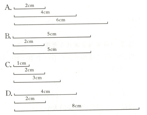 4. 下列四组线段中,可以围成一个三角形的是( )。