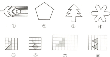 1. 画出图①②③④的对称轴,图⑤⑥⑦⑧的轴对称图形。(8分)