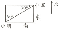 3. 如图,小明看小军在北偏东60°的方向上,小军看小明在( )的方向上。