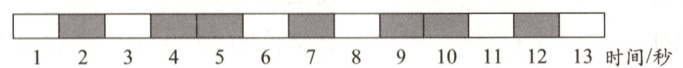 $6. $如下图,海边灯塔上的一盏照明灯以固定的规律发出亮光。下图表示前$13$秒灯光明暗变化的情况,第$1$秒是亮的,第$2$秒是暗的,第$3$秒是亮的$……$观察下图的变化规律,第$2029$秒照明灯是$( )$的。