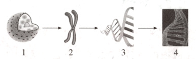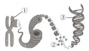 3. 如图所示为染色体、DNA之间的关系示意图,请据图回答下列问题。