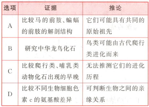 7. 科学以证据为判断尺度,下列证据与推论之间不相符的是( )