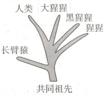 A 解析:据进化历程图可见:人类与大猩猩的亲缘关系最近,A错误;生物进化遵循由简单到复杂的规律,大猩猩的形态结构比长臂猿复杂,B正确;图中的灵长类动物由共同祖先进化而来,C正确;生物进化遵循由低等到高等的规律,据进化历程图可见,人类位于灵长类动物进化的最高等级,D正确。