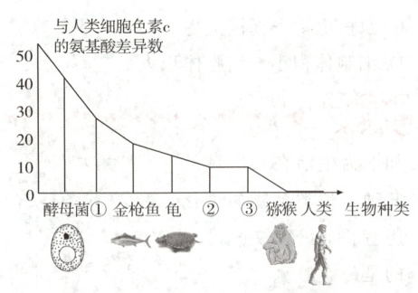8. 细胞色素 $c$ 是由 104 个氨基酸组成的蛋白质。经过对其化学结构的测定,发现各种生物的细胞色素 $c$ 之间存在差异。下表是以人的细胞色素 $c$ 的氨基酸序列作为标准,其他若干种生物的细胞色素 $c$ 与人相比较的结果,如图是进化分支图。