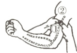 7. 如图所示为指压法止血示意图,如果观察到血液为暗红色,缓慢且连续流出,图中指压位置可有效止血,请分析伤口应该在( )