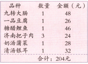 3. (济南历下真题)下图是齐齐一家去某鲁菜馆就餐时的消费账单:
