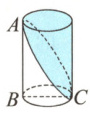 2. 如图,已知BC是圆柱的底面直径,AB是圆柱的高,在圆柱的侧面上,过点A、C嵌有一圈路径最短的金属丝,现将圆柱侧面沿AB剪开,所得的圆柱侧面展开图是( )。