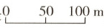2. 如图,已知人民医院距电视塔的实际距离是2400 m,图上距离是4 cm。